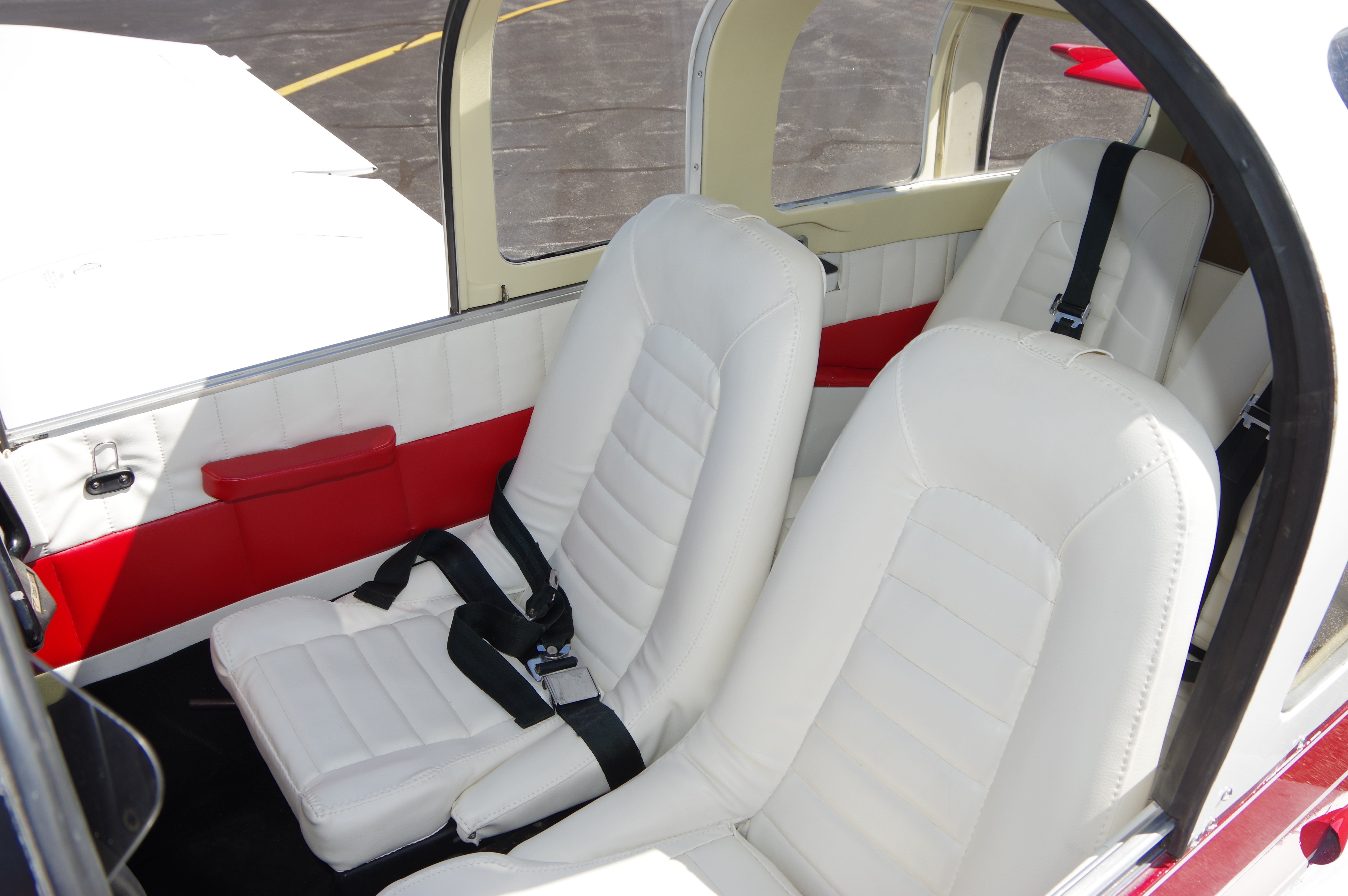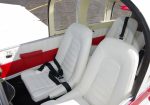 The color of the seat is white and the interior is filled with colors red and white.
